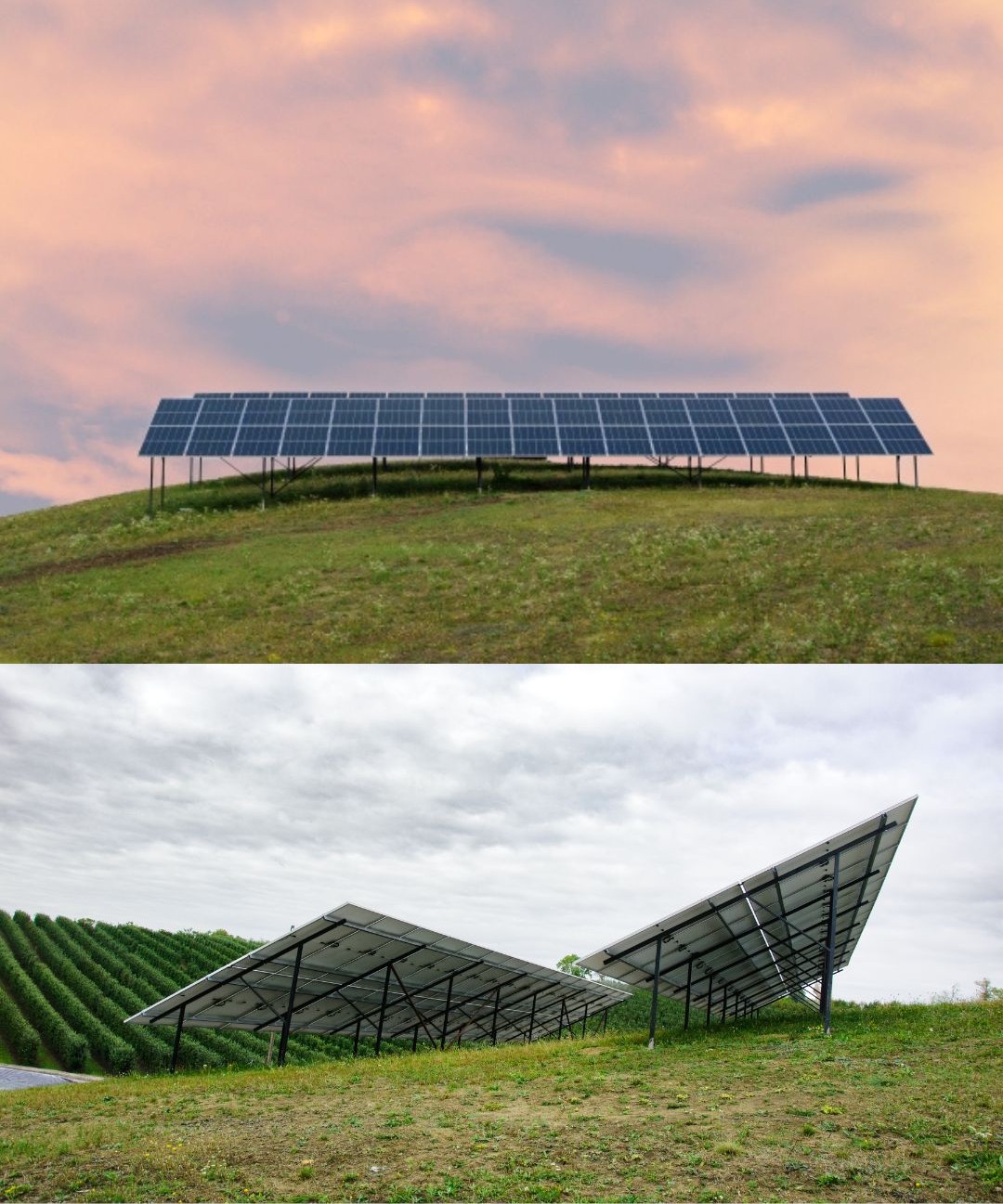 Сонячні панелі встановлені на наземні конструкції із забезпеченням ідеального кута по відношенню до сонця.