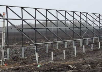 Зазвичай для монтажу наземних конструкцій спочатку заливається фундамент, на який ставлять каркас з опор з оцинкованої сталі. Завдяки цьому металоконструкції прослужать довгі роки та будуть надійно захищені від корозії.