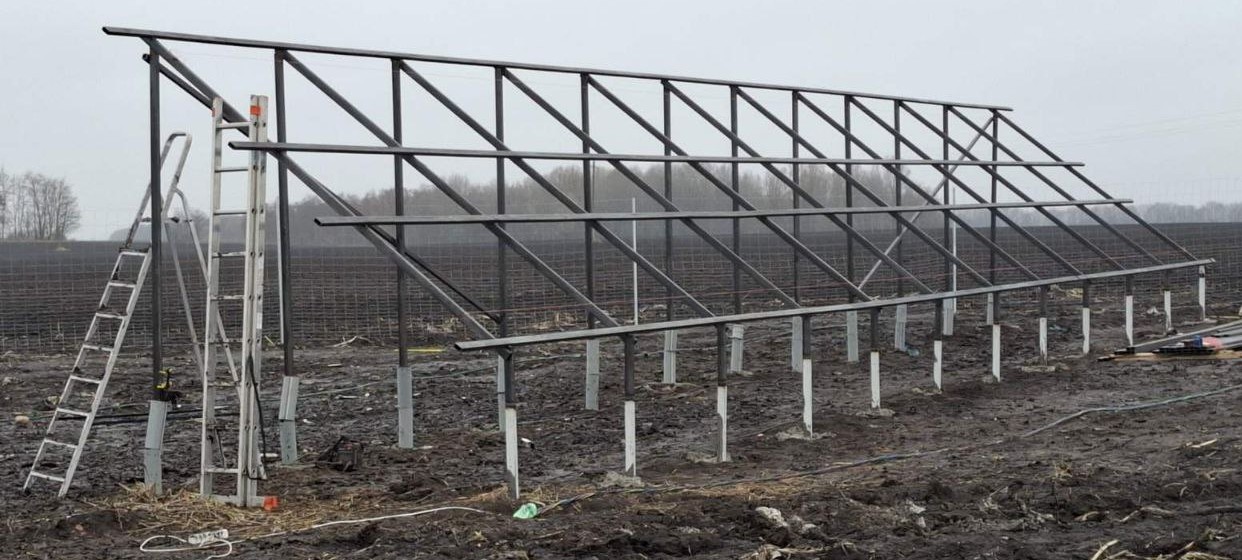 В подальшому на опори кріпляться монтажні рейки, які в свою чергу стають основою для кріплення сонячних панелей.